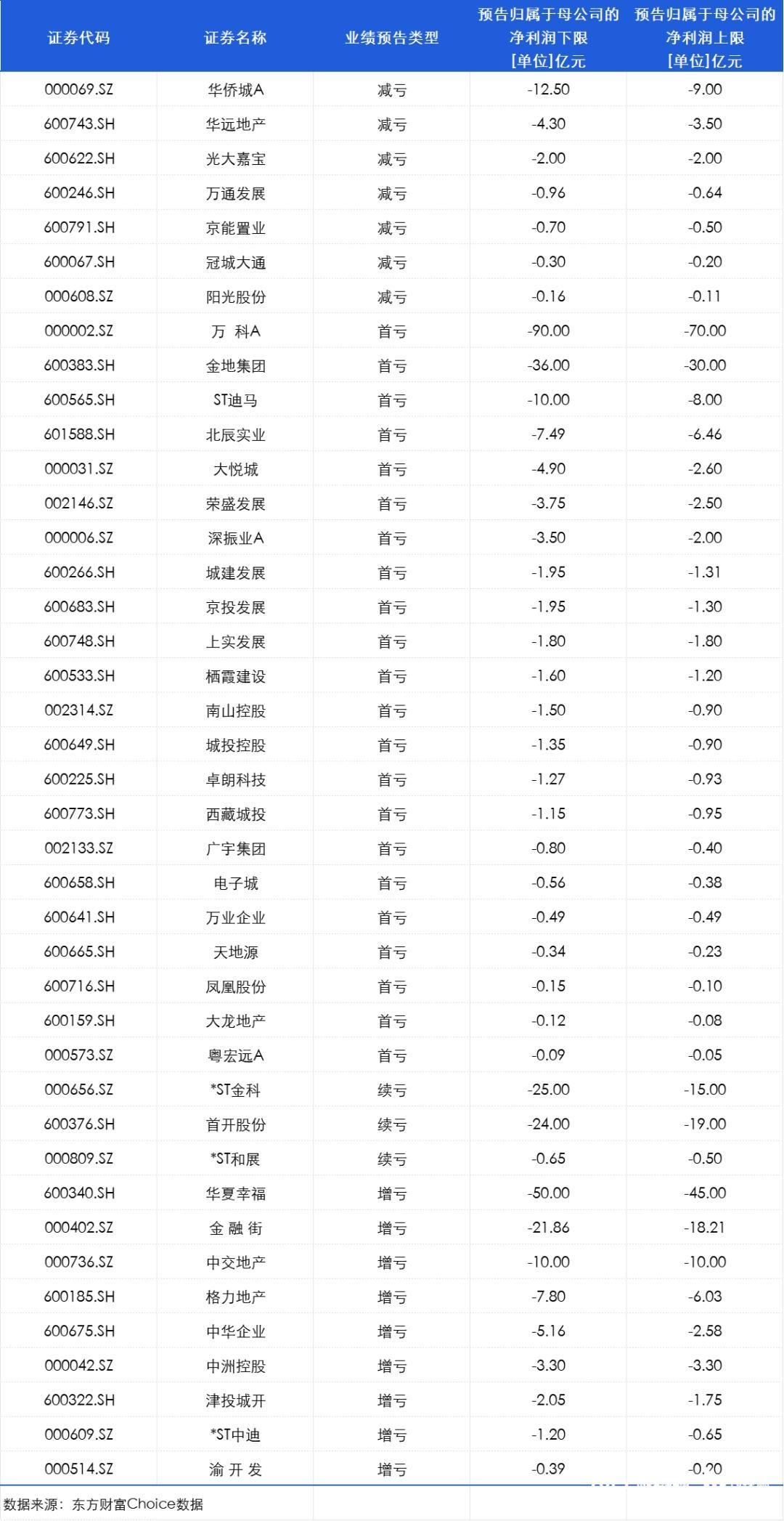 上半年业绩预告亏损房企。